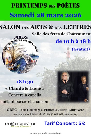 Expo collective des artistes "d'ART et Lettres de Charente" en novembre 2026 à la médiathèque de Champniers