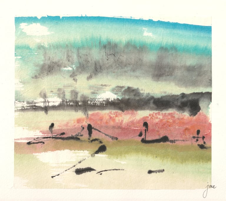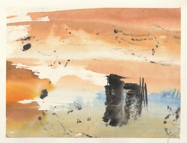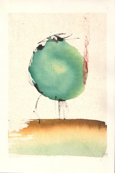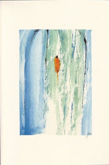 Encre sur papier asiatique (23 cm sur 16 cm) marouflée sur Velin d'Arches (40 cm sur 30 cm) .