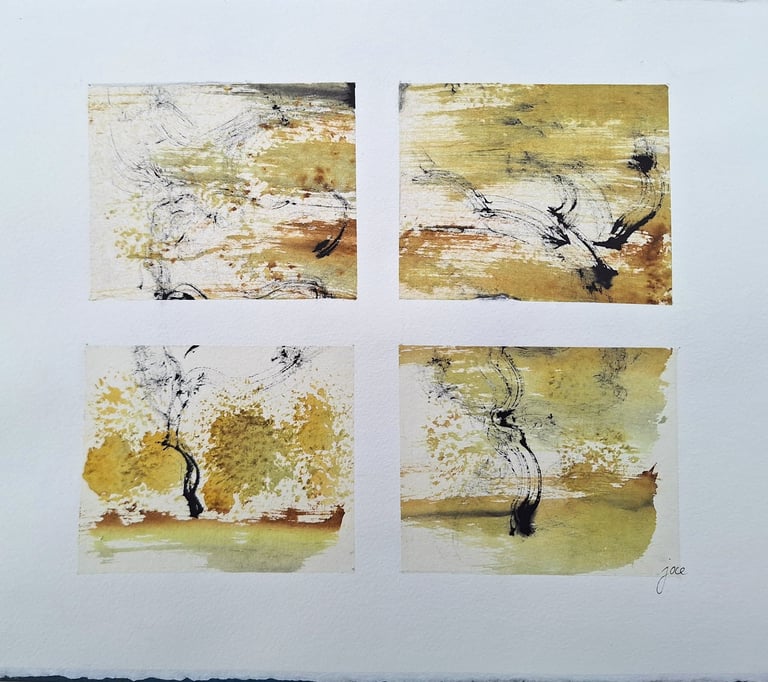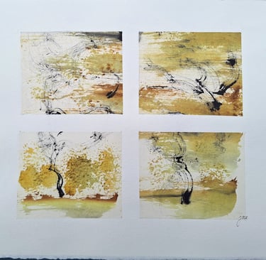 Composition de 4 encres de 12 cm sur 8 cm chacune