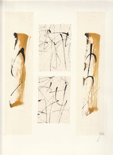 Encre de Chine et encres acryliques plus pigments sur papier asiatique marouflé sur Velin d'Arches, réalisée aux pinceaux chinois et à la plume d'oiseau.