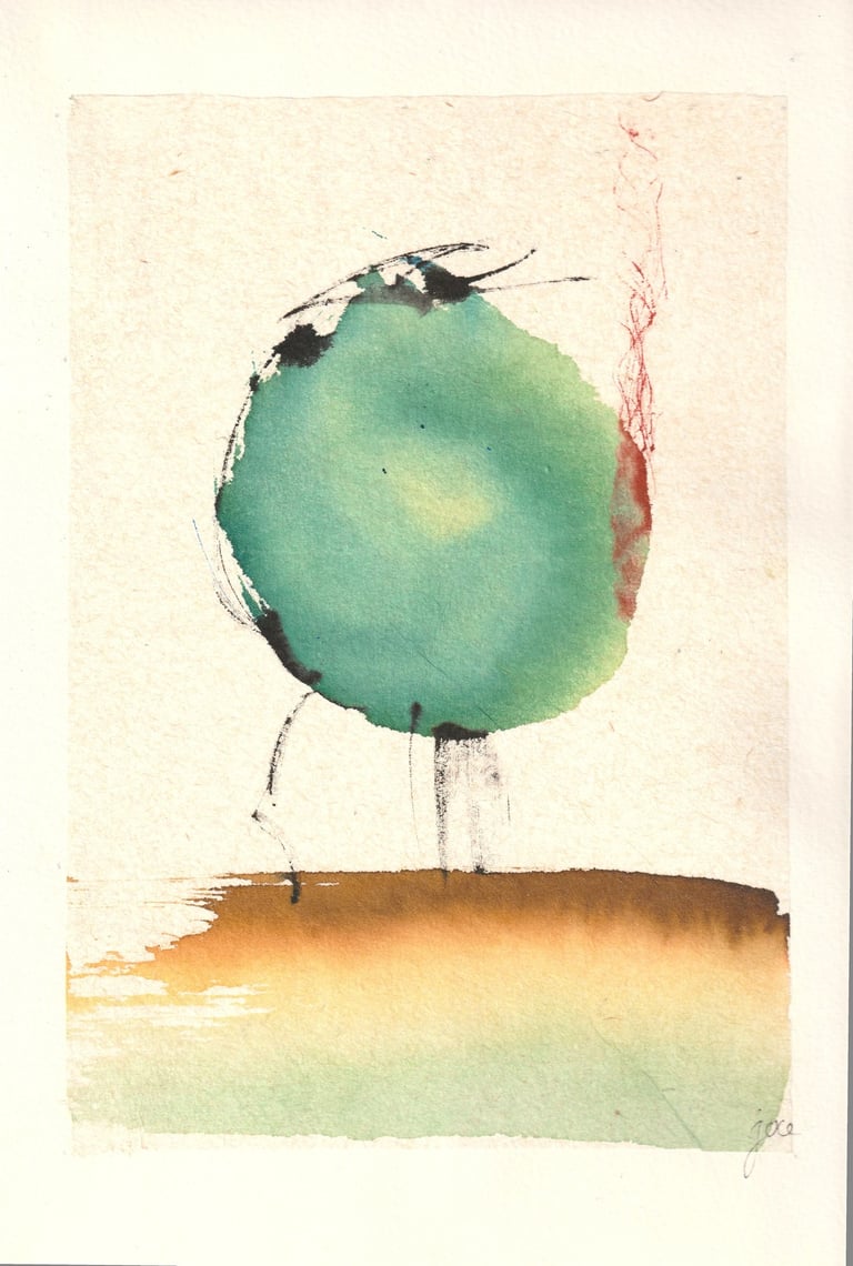Encre sur papier asiatique (23 cm sur 17 cm) marouflée sur Velin d'Arches (40 cm sur 30 cm) . Réalisée avec encre de Chine et encres acryliques au pinceau chinois et au calame .